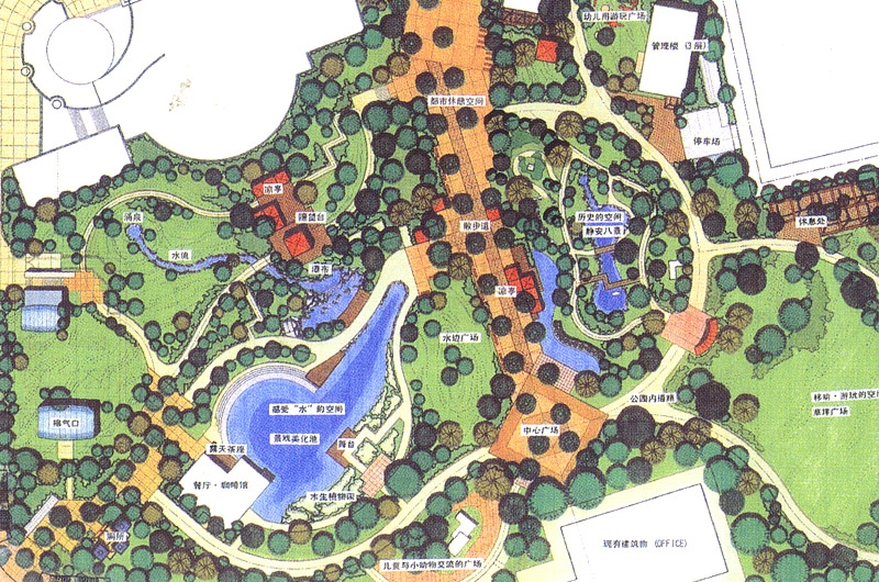 3.4ha ランドスケープ 実施設計・監理 全体計画、静安八景、池、滝、広場、レストラン、コーヒーショップ、フラワーショップ、公衆便所等 中国上海市静安区 コンペ第一位